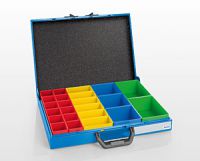 In Sachen Funktionalität, Langlebigkeit und Einstellungsmöglichkeiten ist der Metallkoffer einzigartig. Er besteht aus hochfestem Stahl und einer widerstandsfähigen Pulverbeschichtung. Der Metallkoffer ist in vier verschiedenen Höhen erhältlich und mit Insetboxen, Düseneinsätzen und Trennblechen bestückbar - je nach Bedarf. Die Einhandbedienung mit dem 120 Grad Anschlagwinkel des Deckels ist eine große Erleichterung bei der täglichen Arbeit. Die Verriegelung erfolgt automatisch beim Fallenlassen des Deckels.